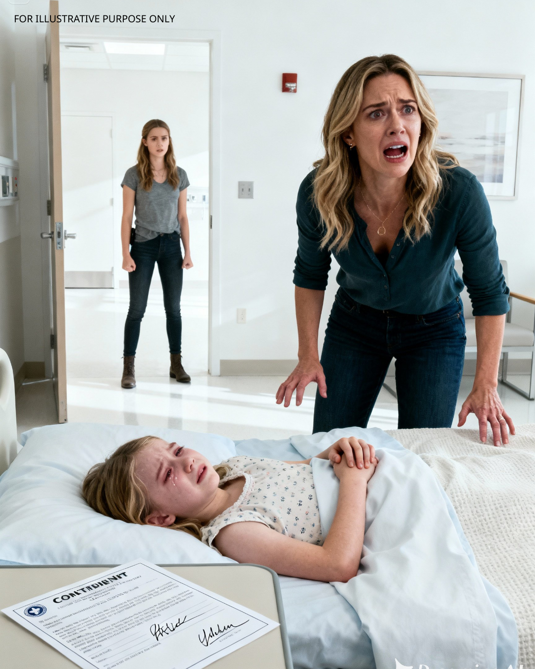 But it wasn’t her daughter’s fear that made Caroline’s stomach drop — it was the stack of paperwork sitting on the tray beside the bed.