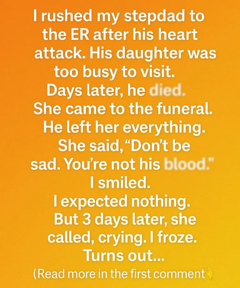 There was no tension left, no need for confrontation—just two people trying to move forward with honesty. We barely spoke of the painful past. Instead, we focused on what her father would have wanted: mutual respect, and perhaps something gentler growing between us. His words had softened the edges of our grief and made space for understanding.
