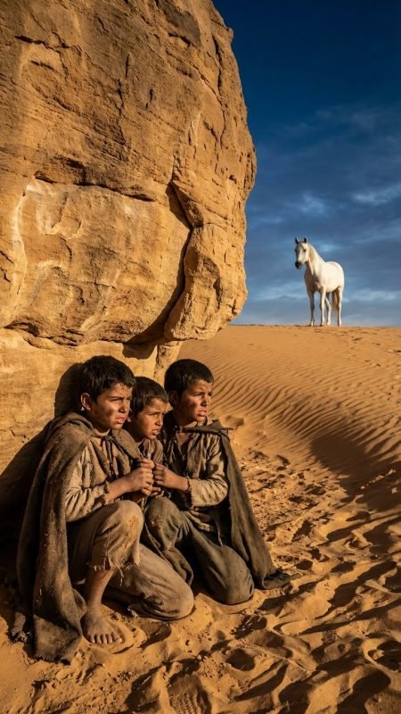 The children stood barefoot on sand that burned like iron. The canteen was drained within minutes. The youngest began to cry, weak and hoarse. The oldest tried to be brave, pulling his siblings closer, whispering lies about help coming soon.