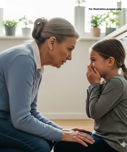 I froze mid-pour, the milk sloshing onto the counter. “Sweetheart,” I said softly, crouching down to her level, “you can tell Grandma anything. You’re safe here.”