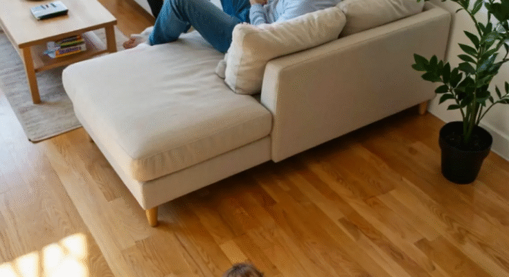 Emma started crying in the living room. The camera showed her father sitting nearby, scrolling through his phone. He didn’t move for several seconds. Then, slowly, he turned toward her.