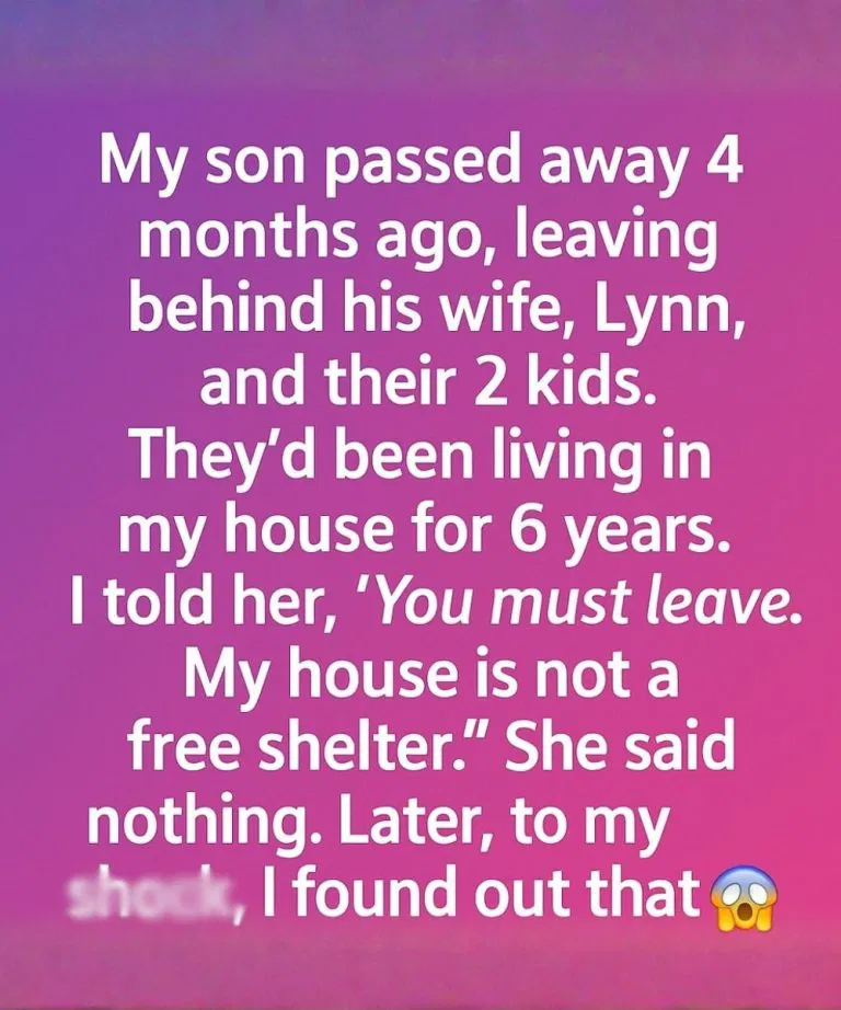 Days later, I found a letter my son had written before his d3ath. In it, he asked Lynn to stay in our home if anything ever happened to him and he wanted his family surrounded by love and familiarity, not loneliness. Reading those words shattered me. I realized I had not only betrayed Lynn’s trust but also gone against my son’s final wish.