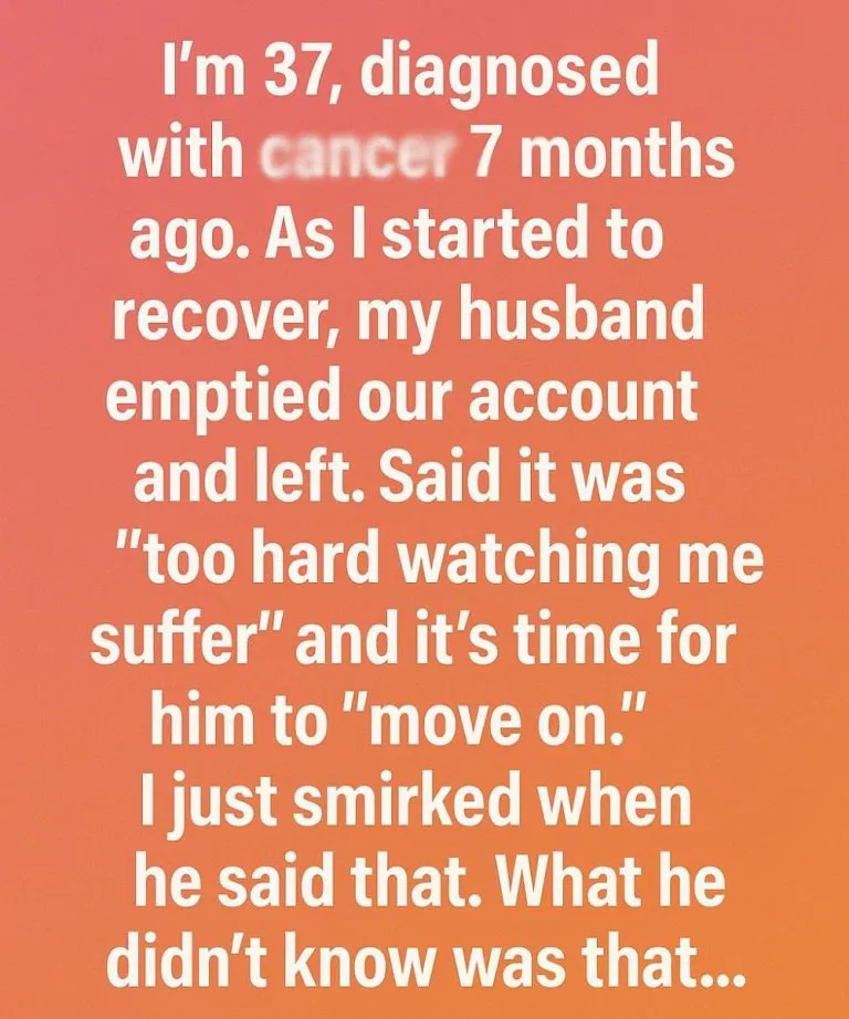Long before my diagnosis, I’d sensed the change – the late nights, the cold silences, the vague explanations. A quiet voice inside urged me to protect myself, so I began transferring my savings into an account under my own name.
