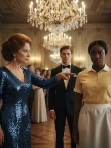 Kesha remained on her knees, collecting glass, but her eyes showed neither humiliation nor fear. It was a profound calm, a serenity that no one there could decipher. The event manager tried to intervene, but William cut him off with a theatrical gesture. The orchestra, confused, stopped playing. The silence turned expectant.