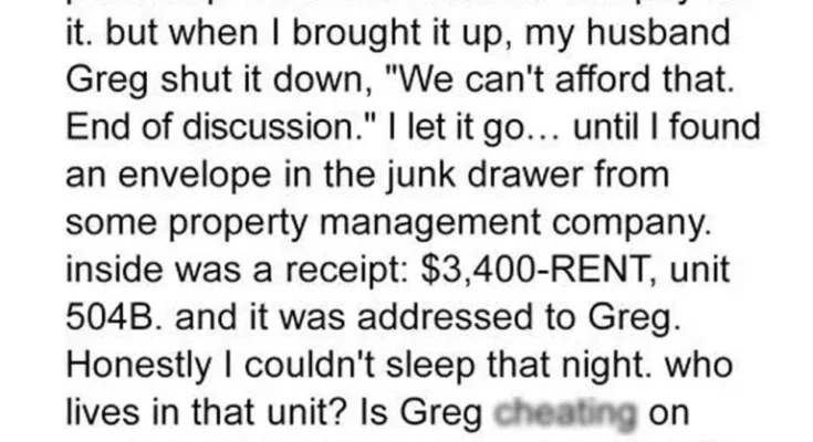 However, I trusted him—until one afternoon, while organizing a junk drawer, I found a neatly folded envelope from a property management company addressed to him.