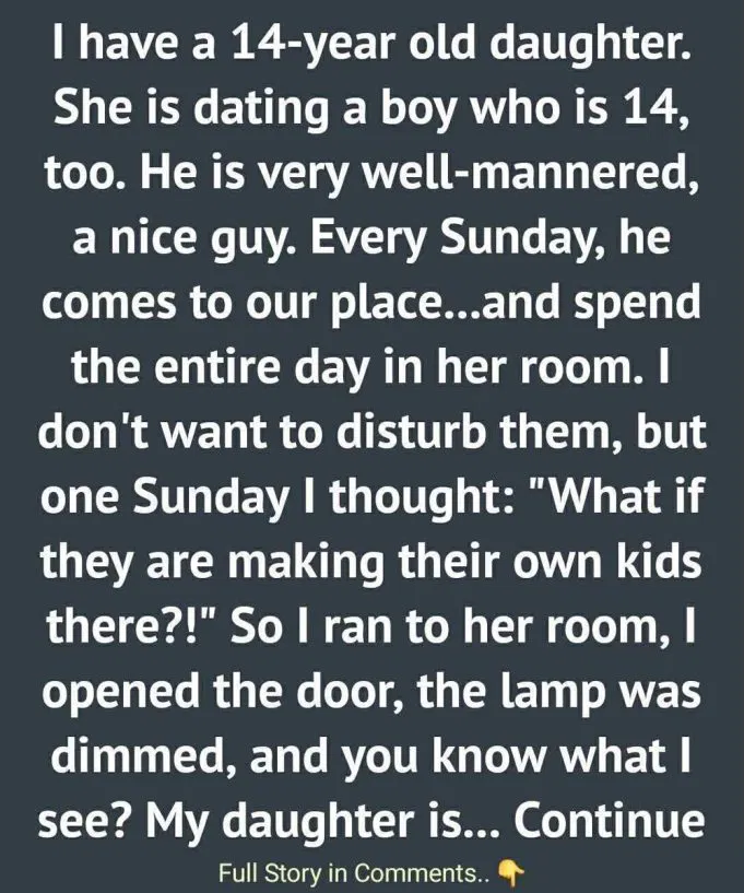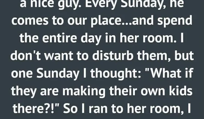 Every Sunday, he visits, and the two of them spend hours in her room. I remind myself they’re just hanging out, but when the giggles get quieter and the door stays firmly shut, my imagination starts to wander.