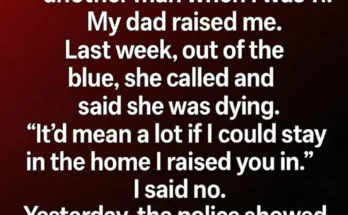 My mom left me for another man when I was 11 years old. My dad raised me. Last week, out of the blue, she called and told me that she …